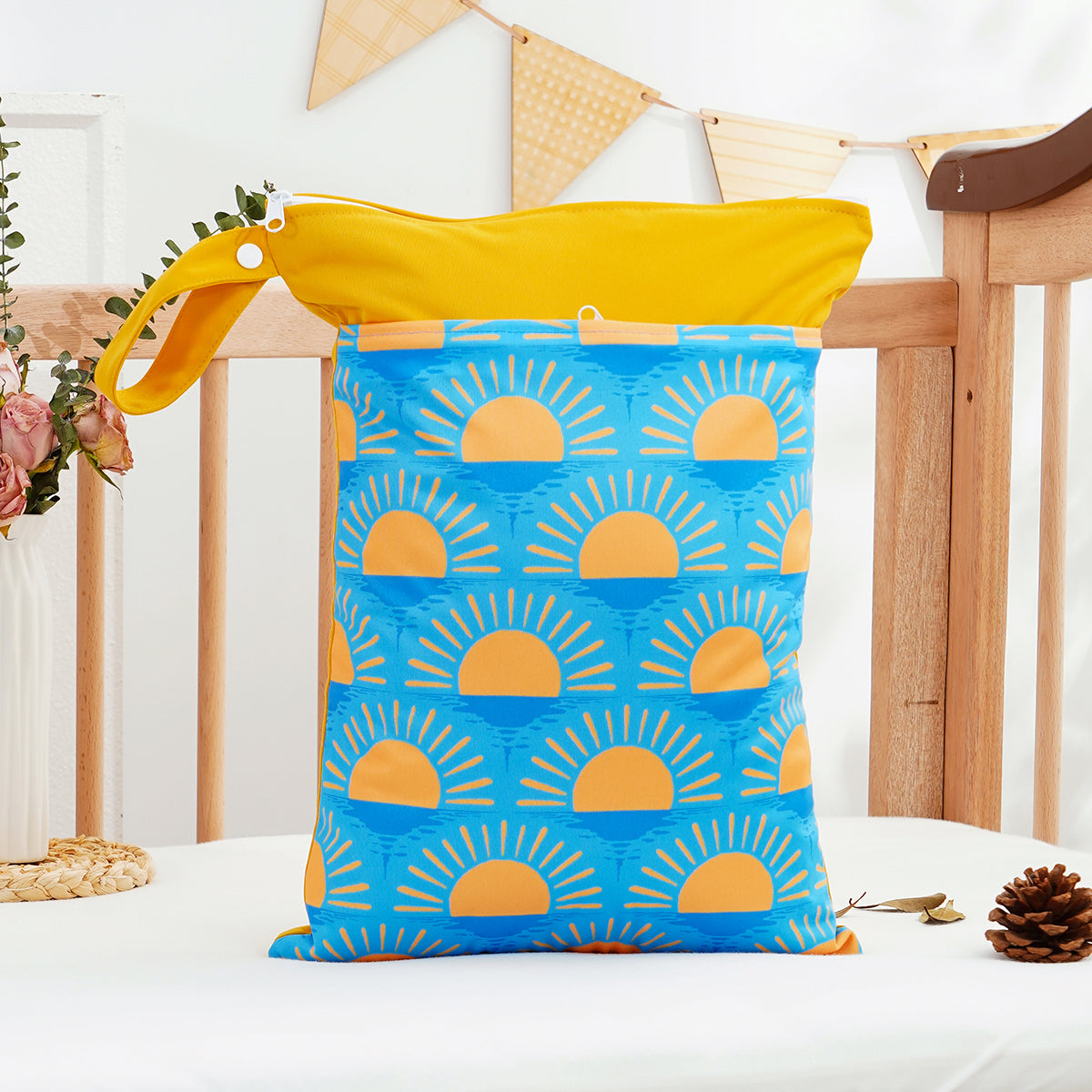 ✨:Happy Flute 1PC Reusable Waterproof Fashion Prints Wet Dry Diaper Bag Double Pocket Cloth Handle Wetbags 30*40CM Wholesale